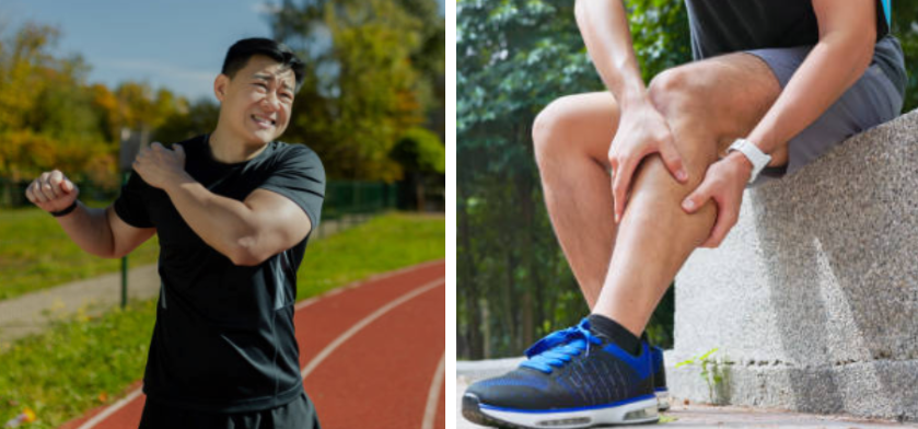근육통: 주로 어깨, 허벅지, 종아리 등 큰 근육에서 극심한 통증 발생