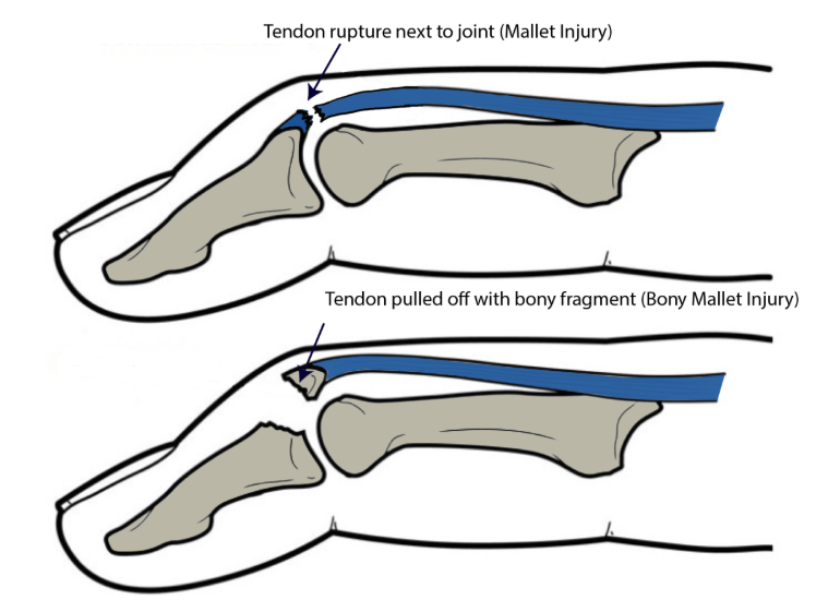 골성 추지 신전건이 붙는 부위의 뼈(원위지골)가 함께 부러진 경우.