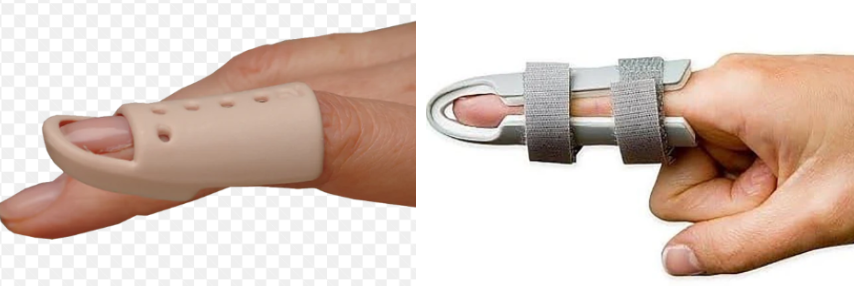 부목(스플린트) 고정: 손가락 끝마디(원위지간관절, DIP joint)를 약간 뒤로 젖힌 상태로 부목을 대어 6~12주간 고정.