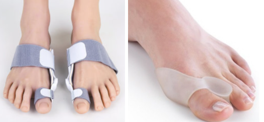 보조기 및 맞춤 깔창: 엄지발가락을 바른 위치로 유도하고, 통증을 완화하며, 변형의 진행을 늦추는 데 도움을 줍니다.