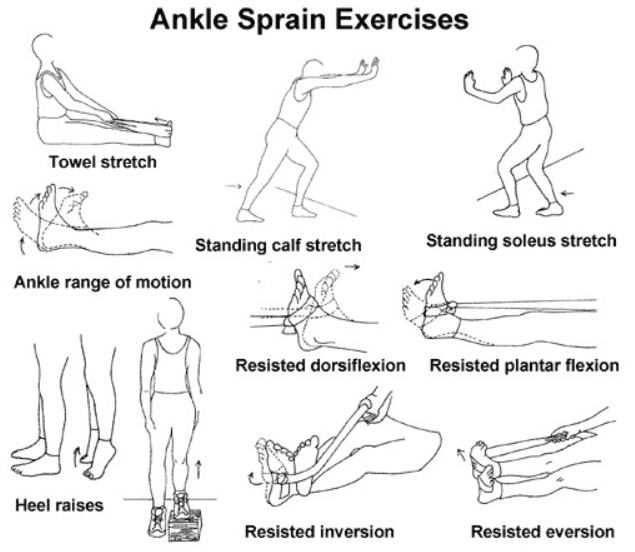♦ 재활운동 깁스 후 단계별 재활필수: 가동범위 회복, 근력 강화, 균형·고유수용감각 교육, 재활 부족시 만성 불안정성 위험↑