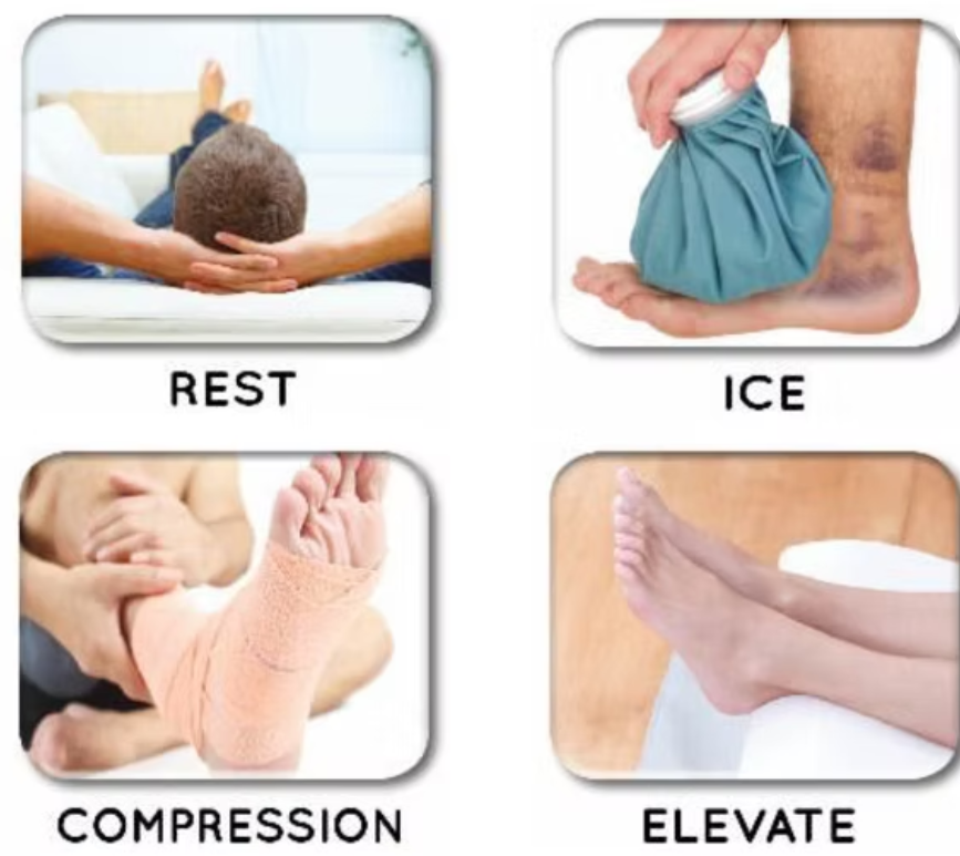 Rest: 안정을 취하고, 부상 부위를 사용하지 않음