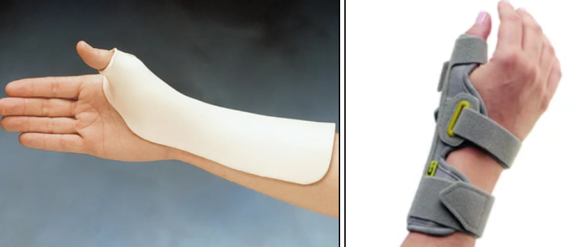엄지 부목/손목-엄지 고정 보조기(thumb spica splint) 착용: 4~6주 정도