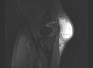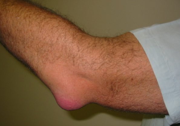 만성화된 경우 팔꿈치에 물혹처럼 물렁거리는 덩어리가 만져짐