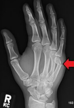 ♦ 정의: 다섯 번째(새끼손가락) 중수골의 경부 부위가 부러지는 골절. 때로 네 번째(약지) 중수골에도 발생할 수 있습니다.