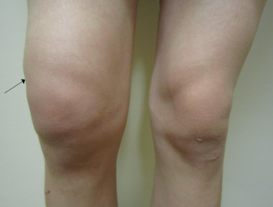 무릎 부위 발적, 열감 (염증이나 감염 시)