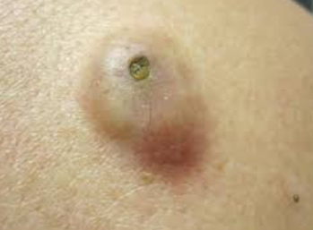 만졌을 때 말랑말랑하거나 단단하고, 피부 표면에는 작은 구멍(면포)이 보이기도 합니다.