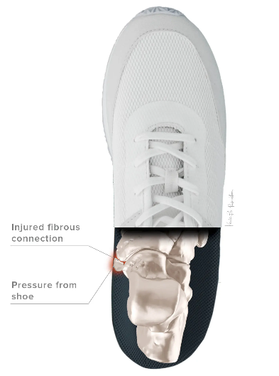 주로 선천적으로 부주상골이 존재하는 상태에서 뼈가 성장하며 연골화하면서 외부 압력, 반복적 스트레스, 충격 등에 의해 통증과 염증이 발생합니다.