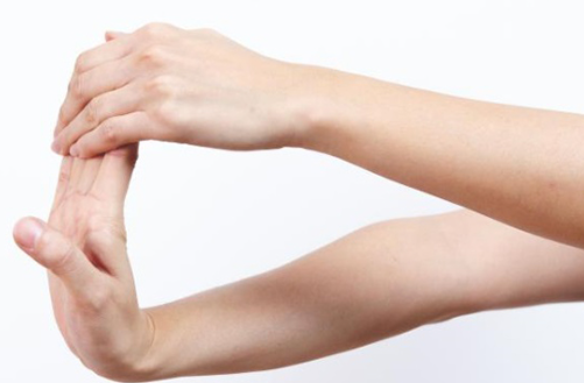 운동에는 팔의 가벼운 흔들기, 손목 굽히기, 폄 운동 등이 포함됩니다.