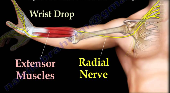 손목이 떨어져서 들어올리지 못하는 손목처짐(wrist drop) 증상