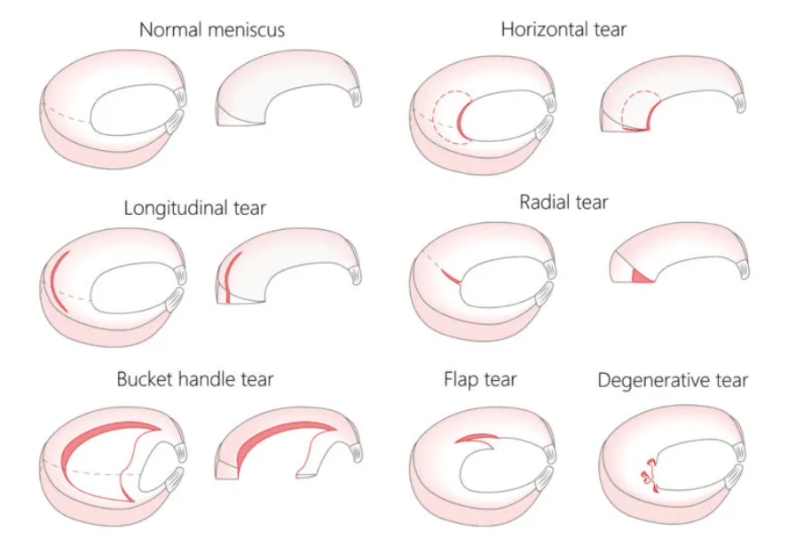 내측 연골판과 외측 연골판 중 내측 연골판 파열이 더 흔합니다.