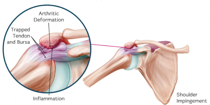♦어깨 관절 부위인 견봉과 회전근개의 공간이 좁아지면서 힘줄이 반복적으로 충돌하는 경우