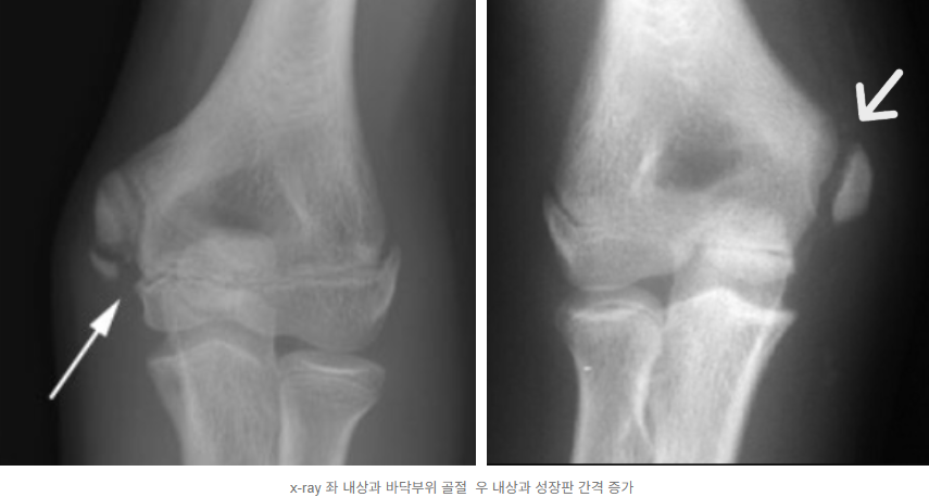 pitcher's elbow, 또는 'medial epicondyle apophysitis', 'little leaguer’s elbow'라고도 불리며, 팔꿈치 안쪽의 뼈 돌기(내측상과)가 반복적이고 과도한 스트레스를 받아 염증이나 손상이 발생하는 상태입니다. 이 부위는 손가락과 손목을 움직이는 근육의 힘줄이 부착된 곳으로, 투구 동작을 반복하면 힘줄 및 성장판에 미세손상이 누적되어 발생합니다.
