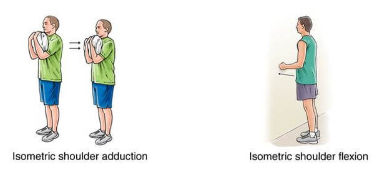 내전 및 내부 회전을 위한 등척성(isometric) 운동 시작