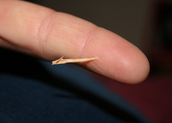 외부 충격이나 작업 도중 손에 박히는 유리, 금속, 나무 조각, 플라스틱, 모래, 식물성 가시, 동물의 털 등이 대표적입니다.